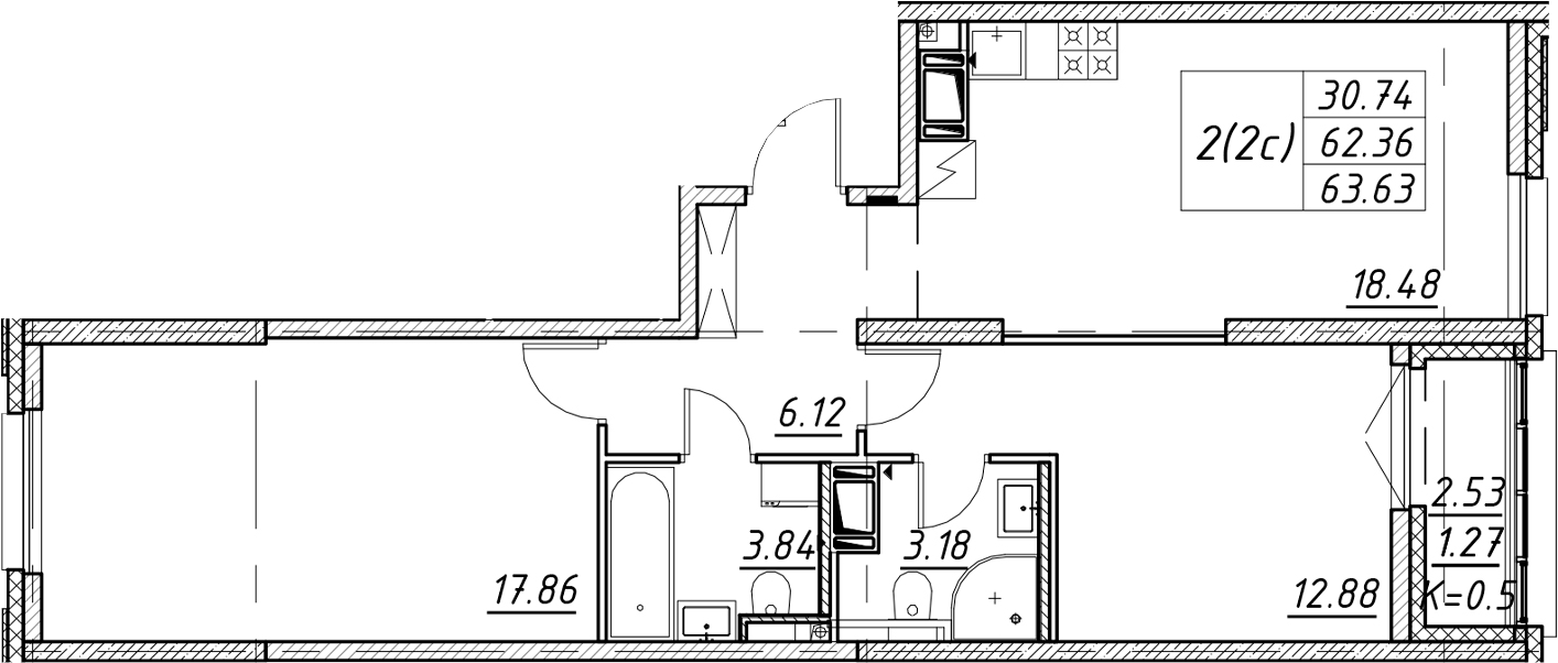 • Площадь63,63 м2