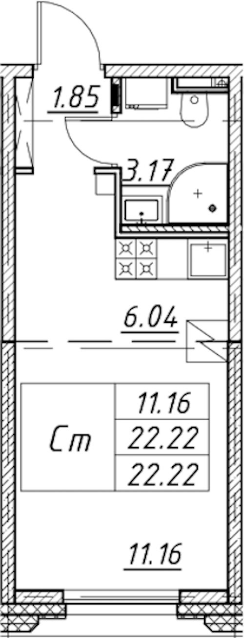 Квартира-студия на 2-ом этаже 22,22 кв.м