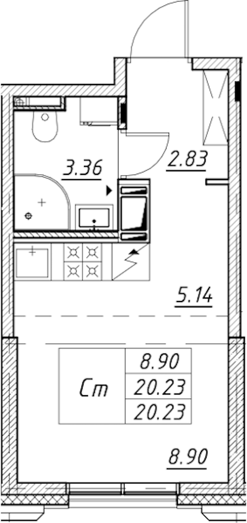 Квартира-студия на 4-ом этаже 20,23 кв.м
