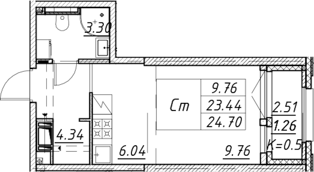 Квартира-студия на 10-ом этаже 24,7 кв.м