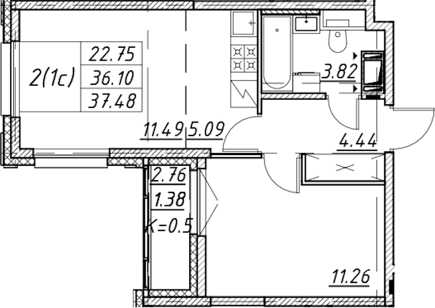 • Площадь37,48 м2