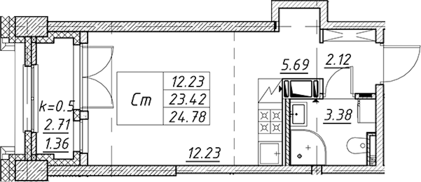 • Площадь24,78 м2