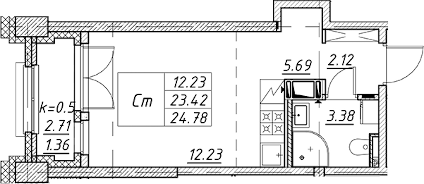 • Площадь24,78 м2