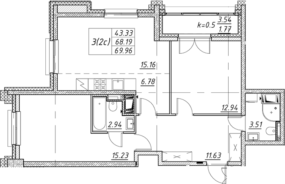 - Площадь69,96 м2