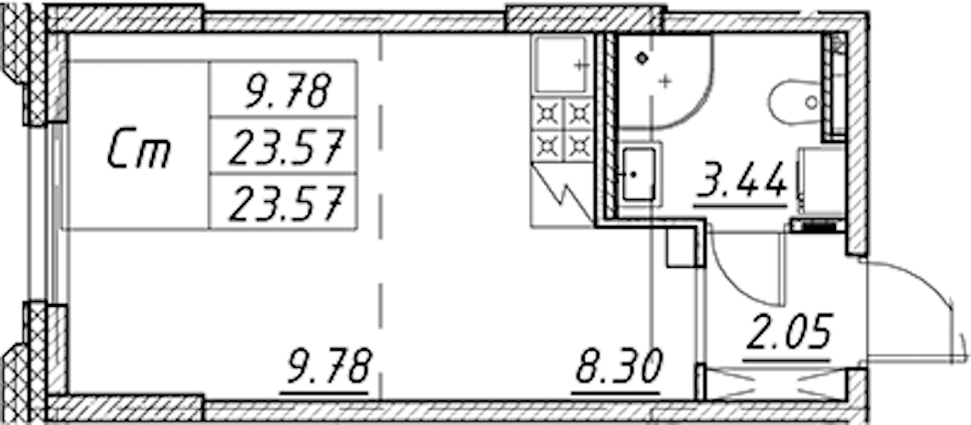 Квартира-студия на 2-ом этаже 23,57 кв.м