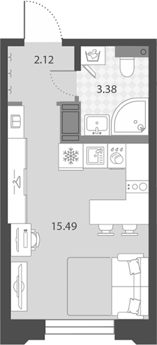 Квартира-студия на 3-ем этаже 20,99 кв.м