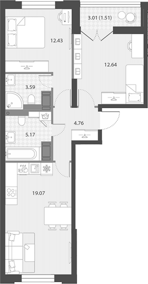 - Площадь59,17 м2