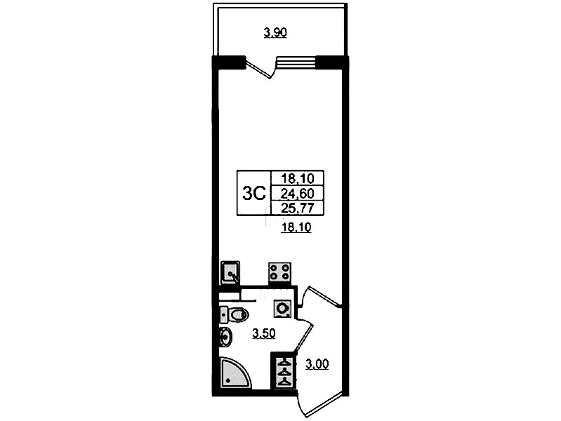 • Количество комнатСтудия