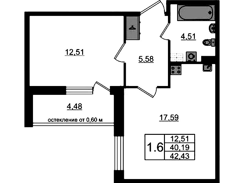 - Площадь40,19 м2