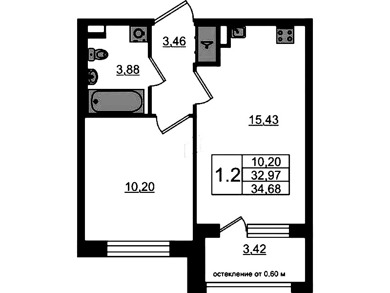 • Площадь кухни15,43 м2