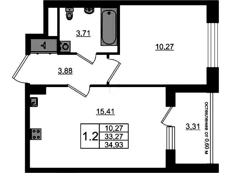 - Площадь33,27 м2