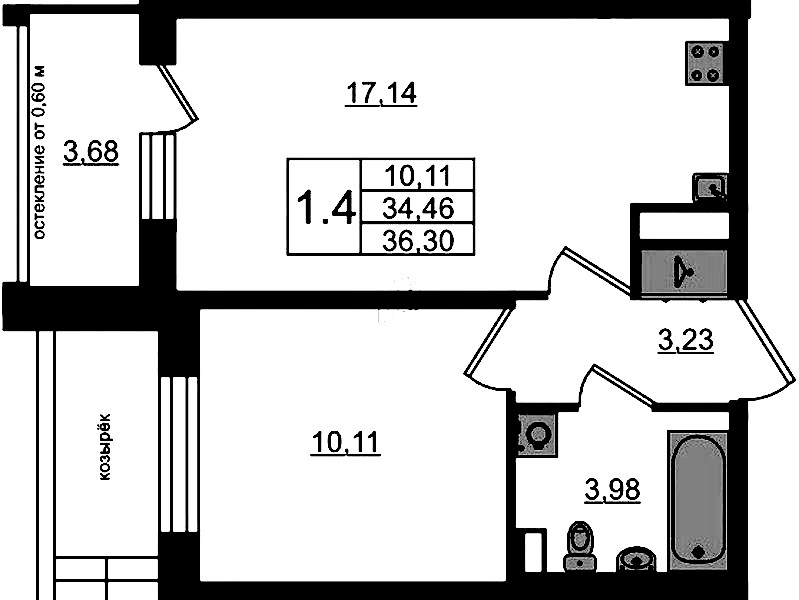 - Площадь кухни17,14 м2
