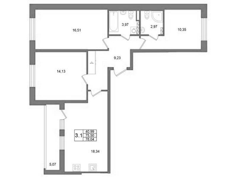 Трёхкомнатная квартира на 4-ом этаже 75,5 кв.м