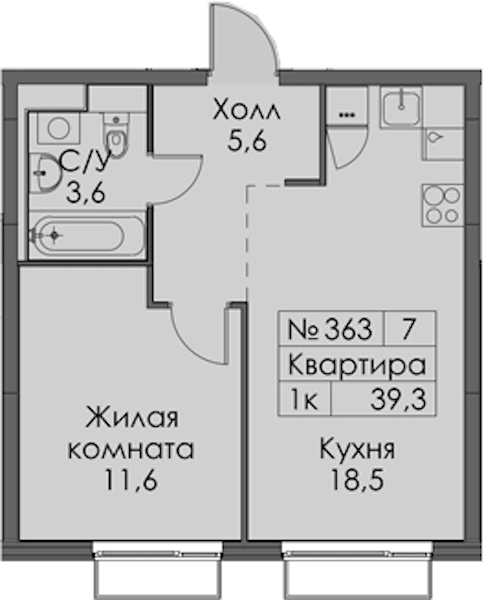 - Площадь39,3 м2