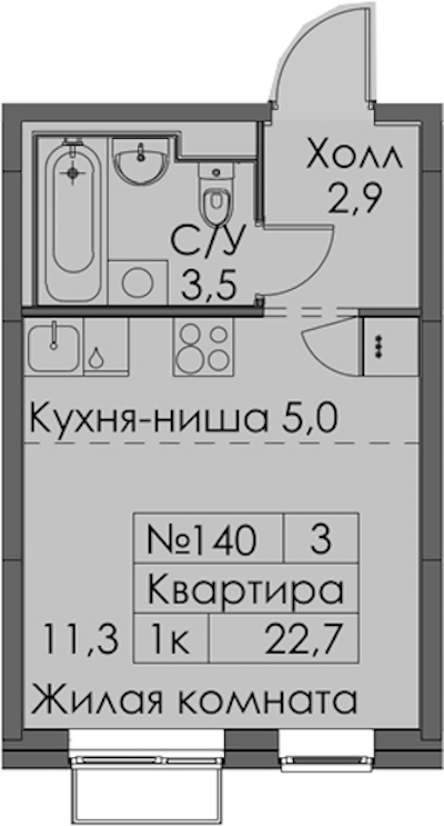 • Площадь22,7 м2