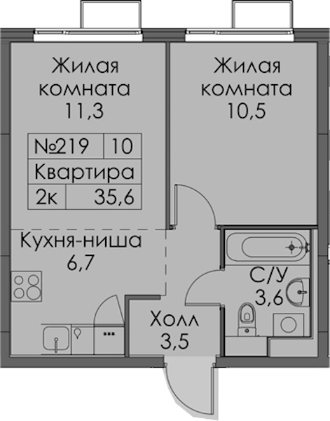 - Площадь35,6 м2