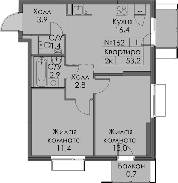 - Площадь53,2 м2