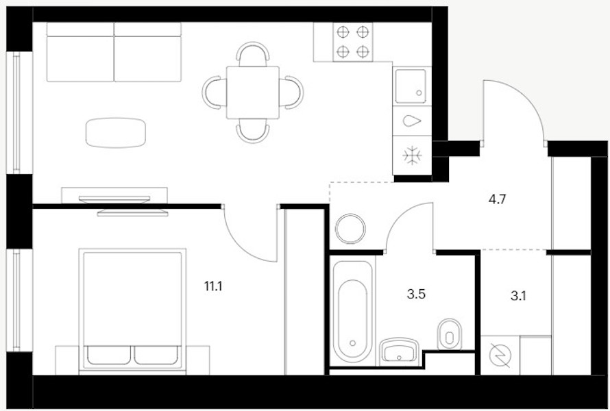 • Площадь38,1 м2