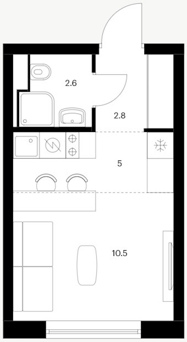 Квартира-студия на 1-ом этаже 20,9 кв.м