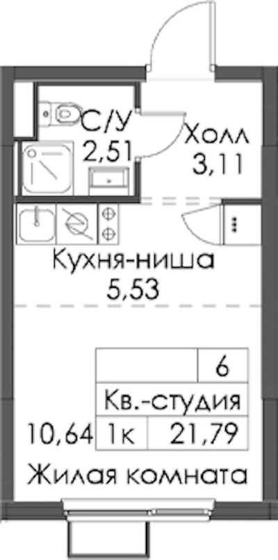 Квартира-студия на 3-ем этаже 21,79 кв.м