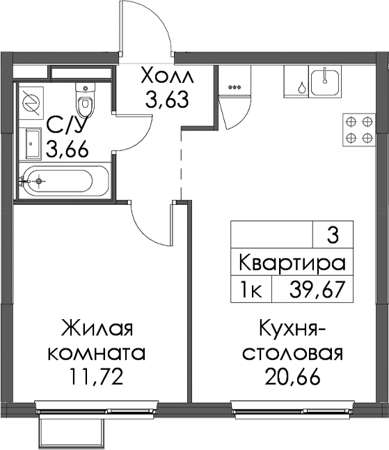• Площадь39,67 м2