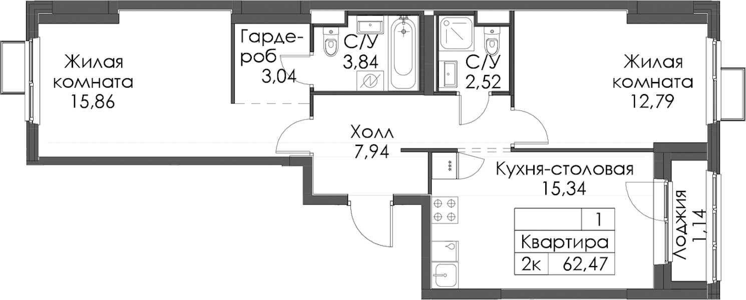 • Площадь62,47 м2