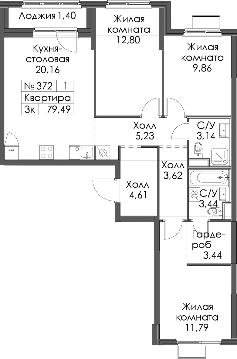 - Площадь79,49 м2