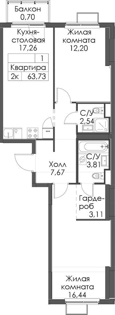 - Площадь63,73 м2