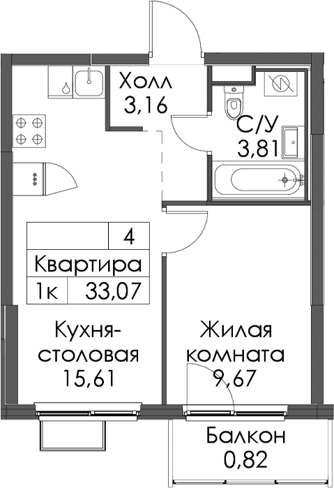 • Площадь33,07 м2